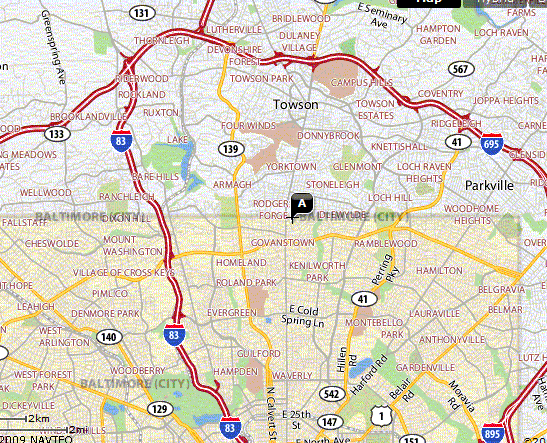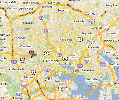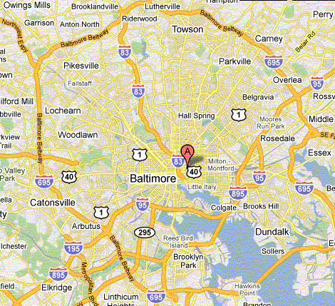 Six blocks east of Johns Hopkins Hospital, near downtown